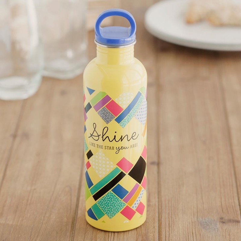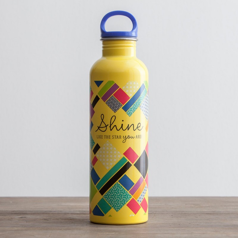運動時、購物時、工作時隨身帶著這有亮麗,色調輕快,開朗配色的不鏽鋼水壺吧!它上面的字顯示了我們每個人都是獨特的,能像星星一樣發光發亮。另一面的經文訴說著我們照著上帝的義走,我們的生命將充滿光和喜樂。