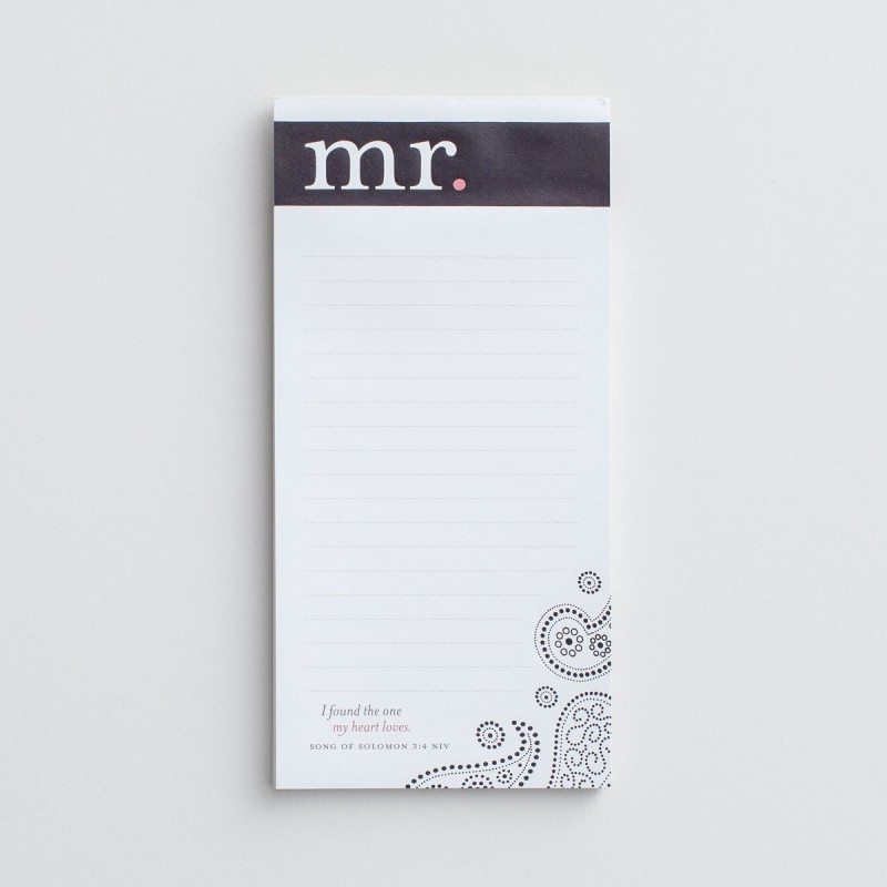 This fun Mr. memo pad is great for jotting down daily 'to do' lists, noting urgent reminders, or simply listing reasons to be thankful! Combined with the Mrs. memo pad, it makes a great gift for couples of every age!